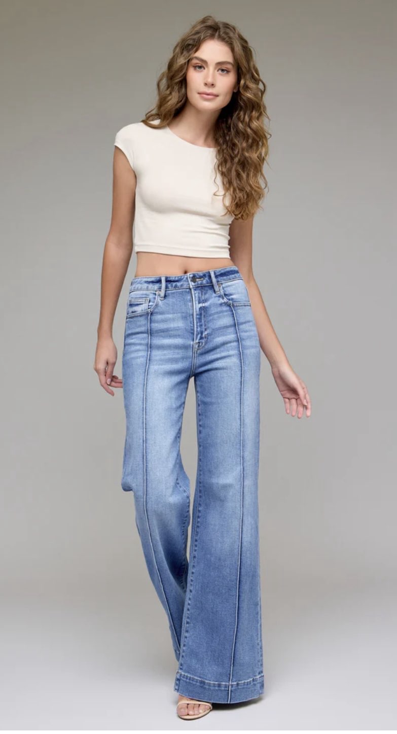 HIGH RISE WIDE LEG WAIST DETAIL JEANS