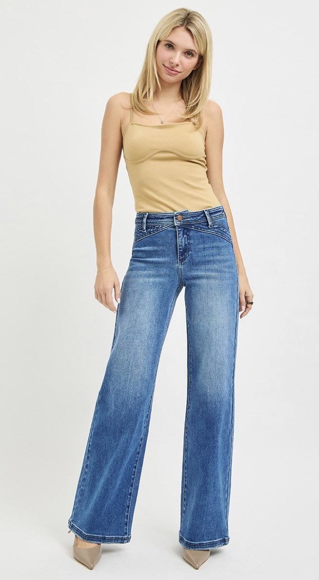 HIGH RISE WIDE LEG WAIST DETAIL JEANS