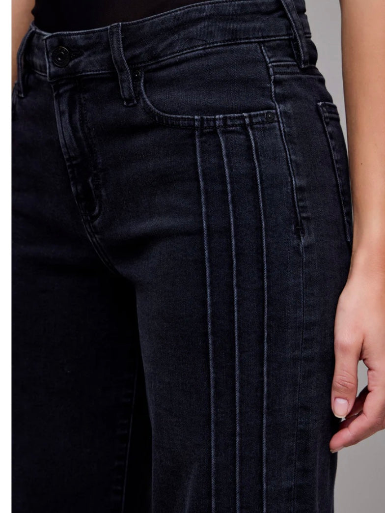 •Mid-Rise Pin-tuck Comfort Flare Jeans