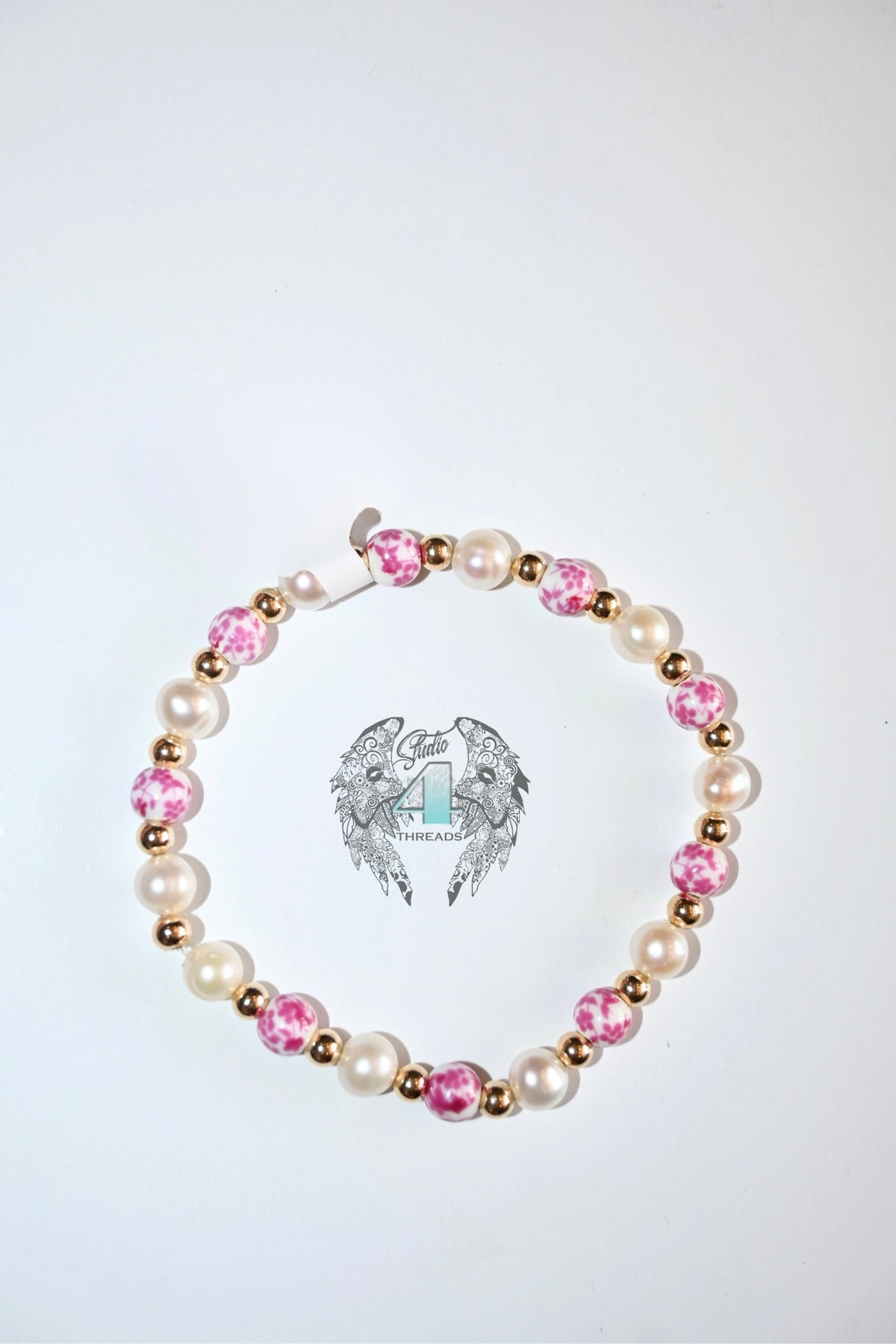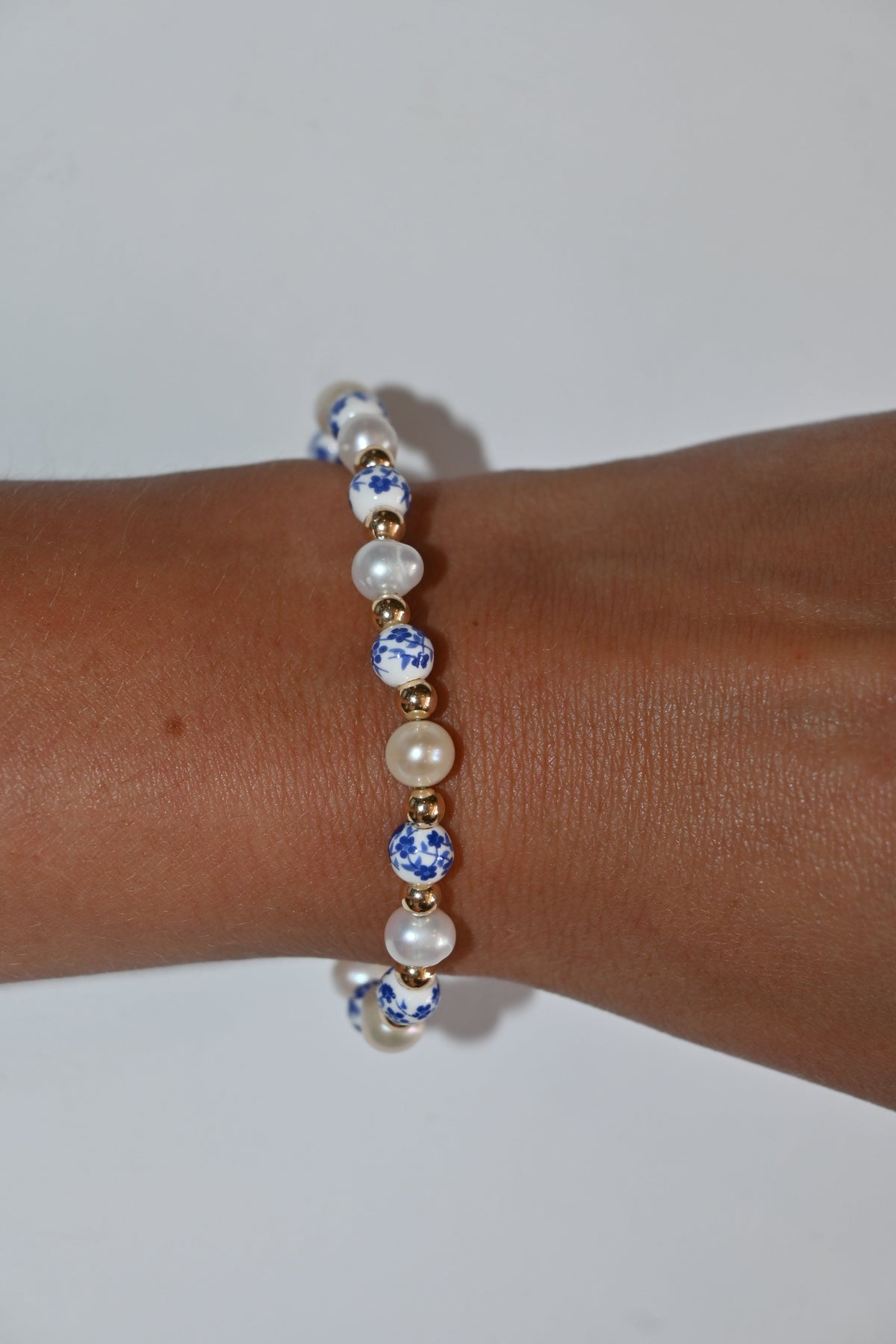 Blue Rose | Floral Porcelain & Gold-Filled Bead 6.5" Bracelet