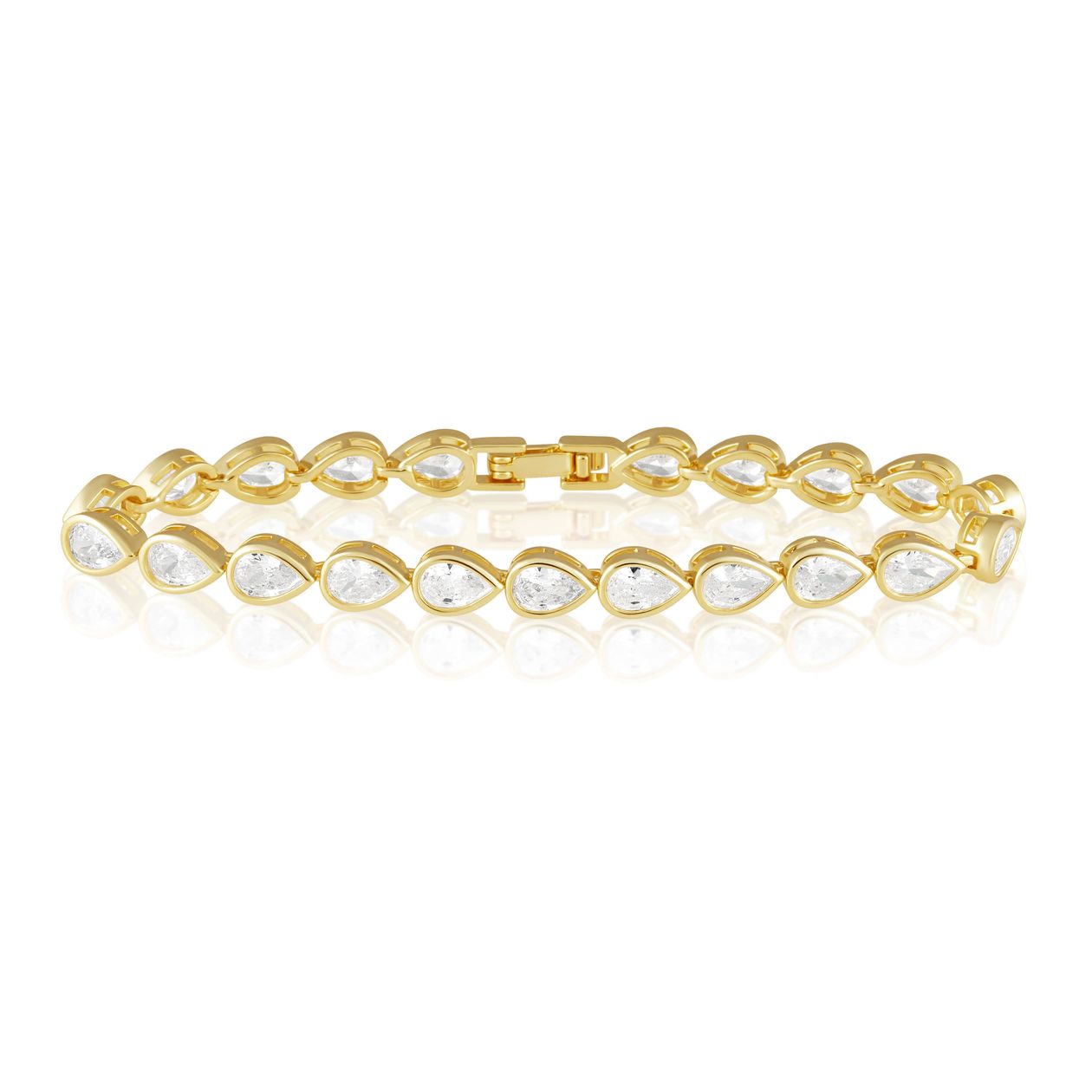 Indulge in the elegance and sophistication of our Ines Teardrop Tennis Bracelet. Adorned with teardrop cut stones, this bracelet will add a touch of glamour to any outfit. Embrace your inner diva and make a statement with this stunning piece.