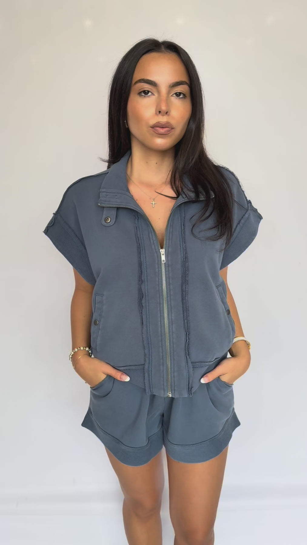 Vintage Wash Cuffed Detail Bottom Lounge Shorts