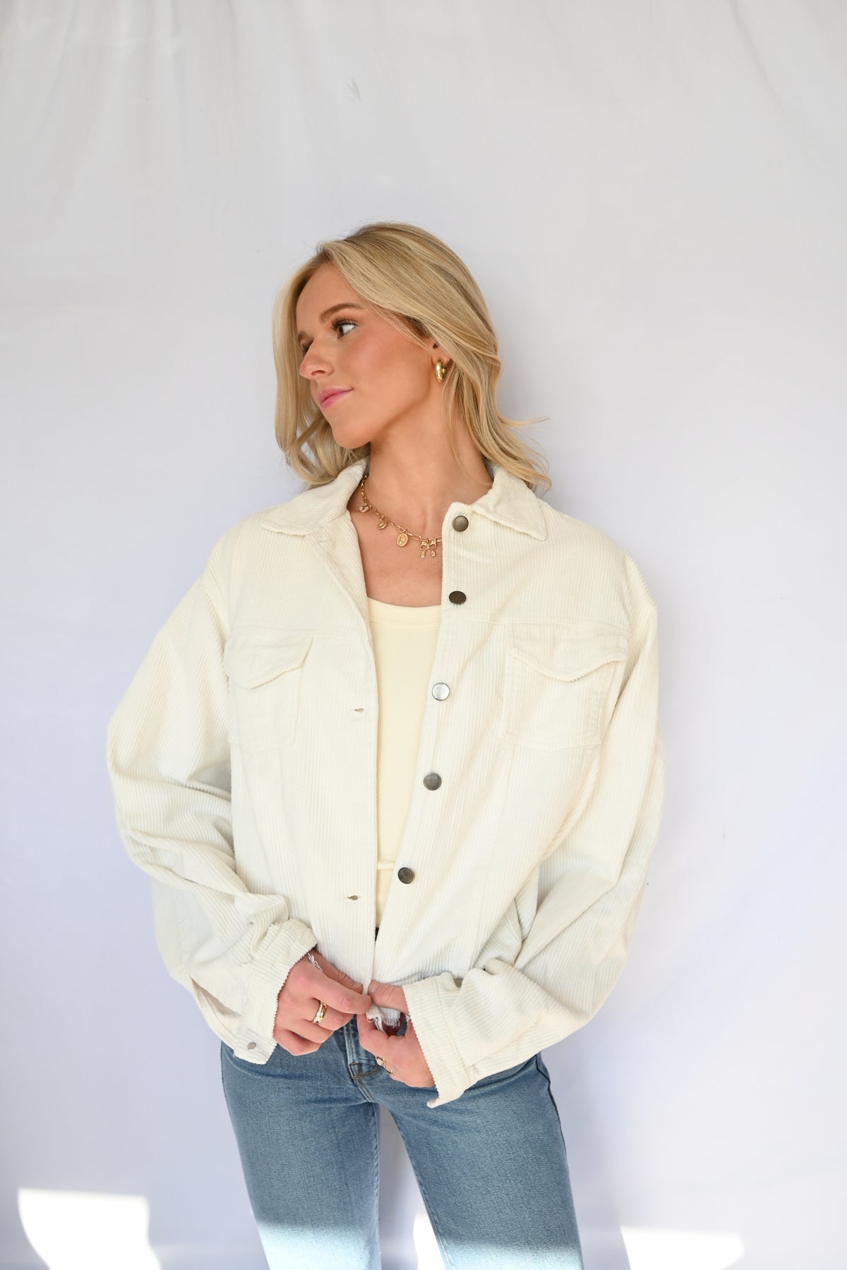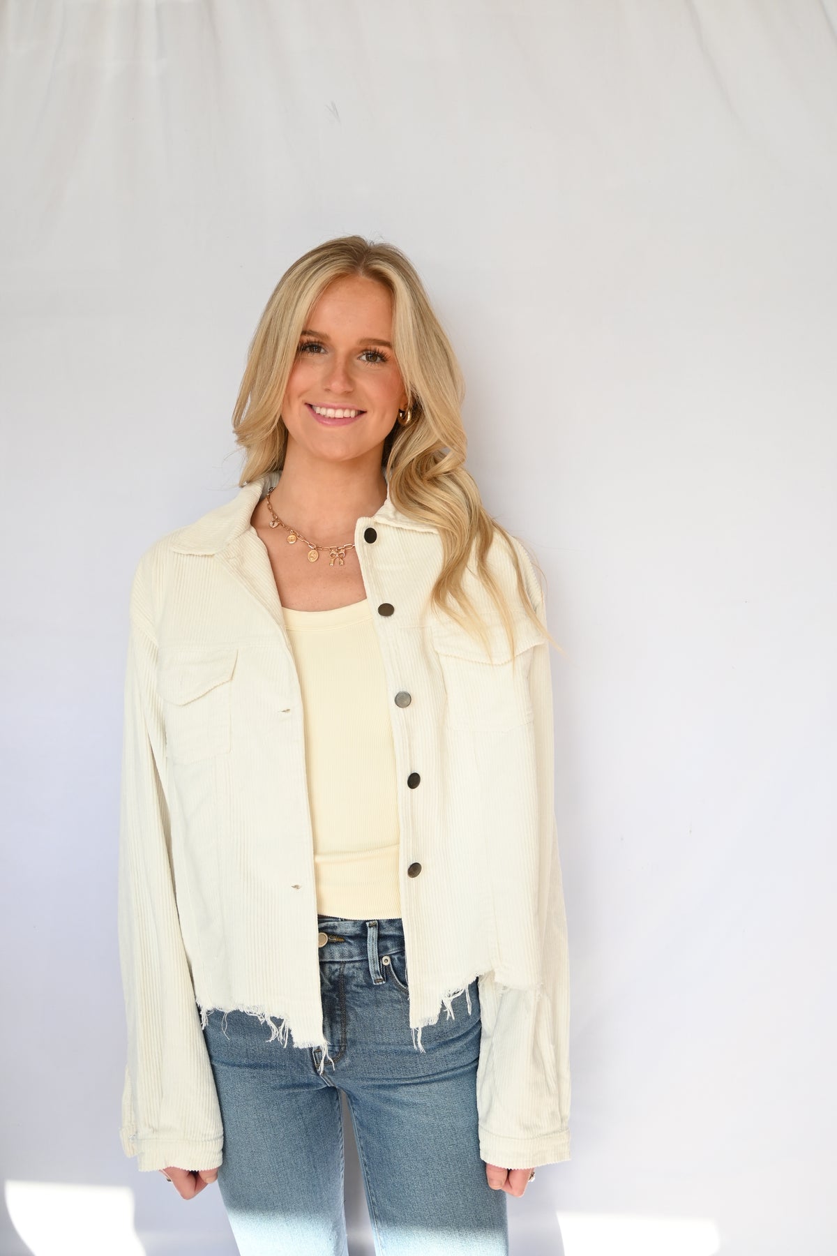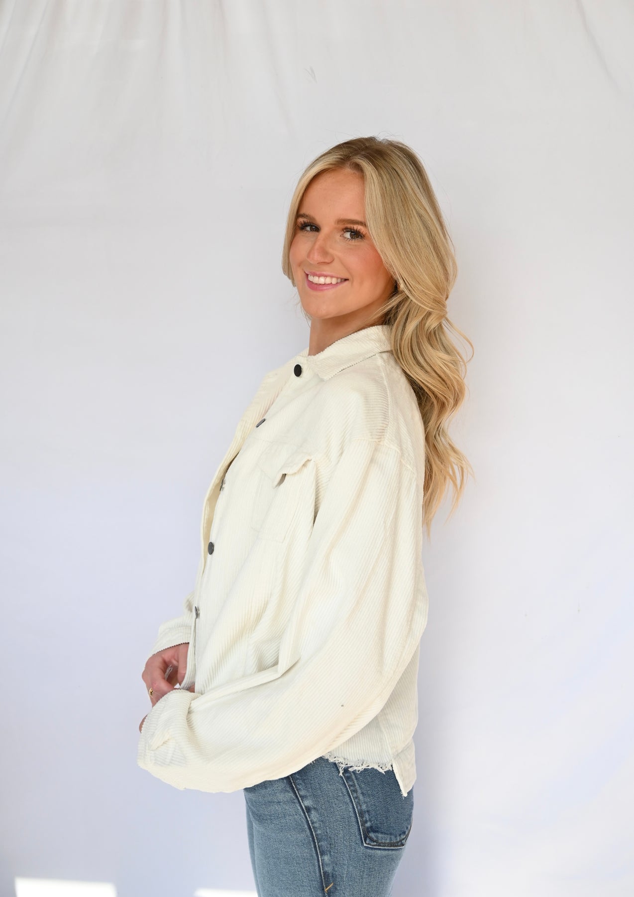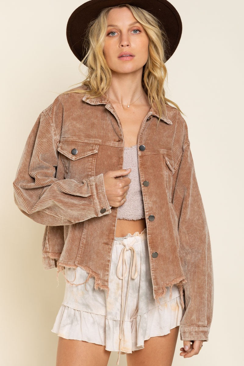 Pocket Front Button Down Distressed Hem Corduroy Jacket