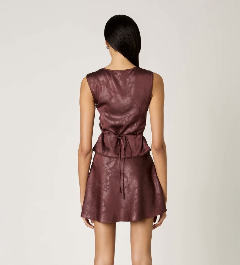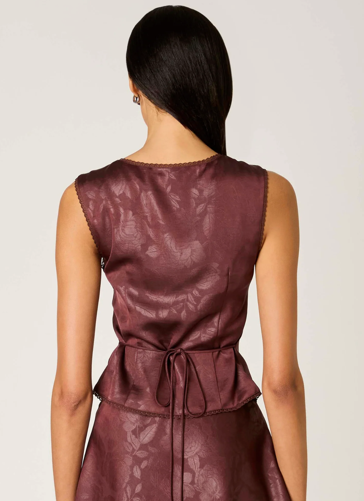 A flirty tie-front top with a soft satin sheen and romantic corset vibes.