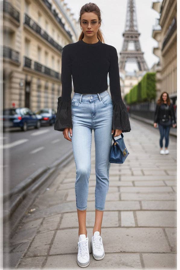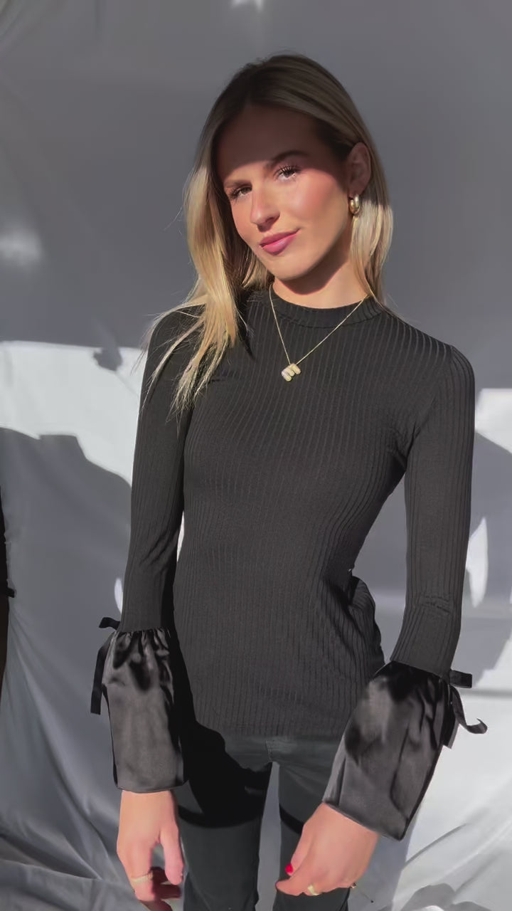 Mixed Media Bell Sleeve Top with Satin Cuffs
